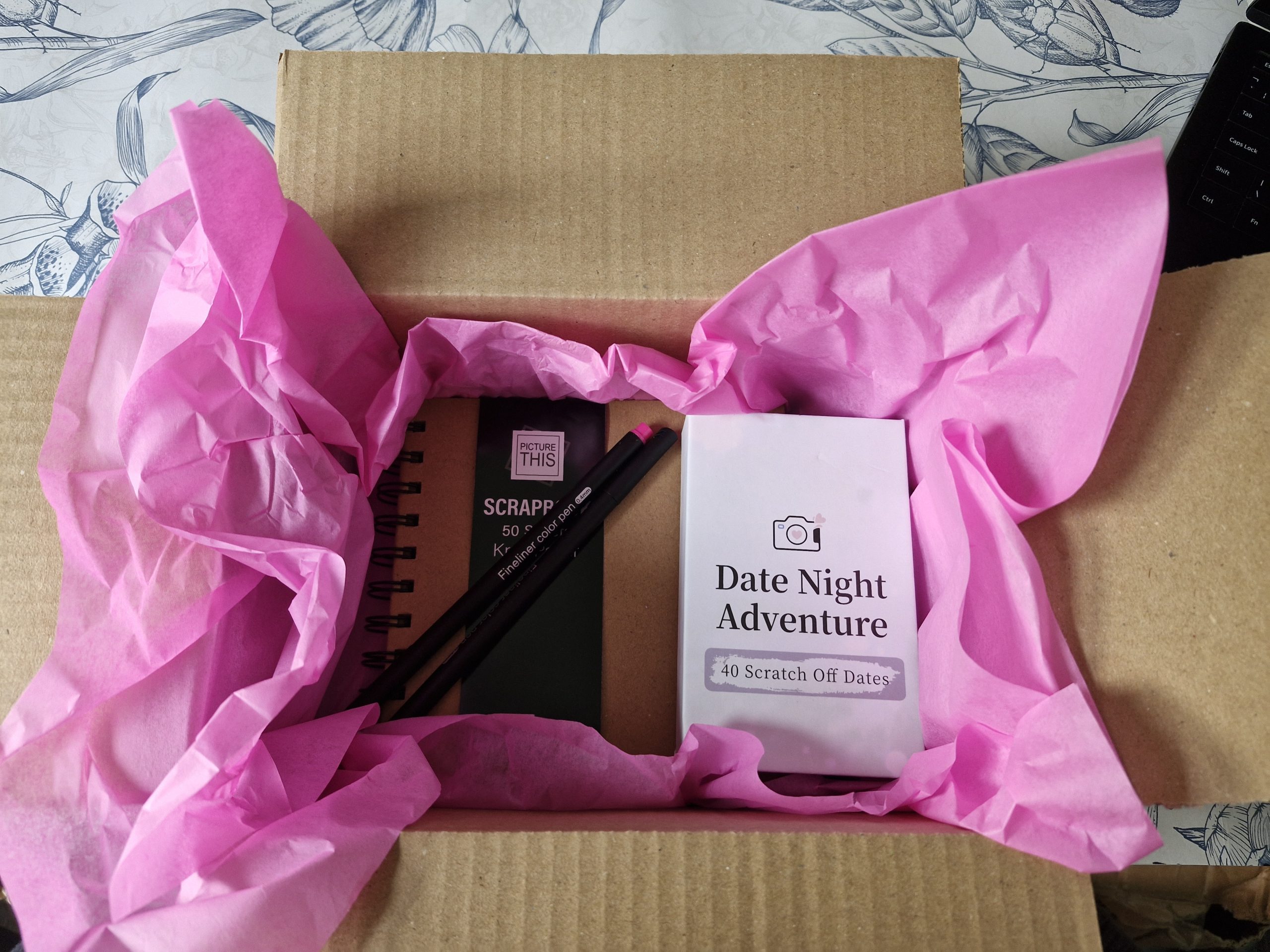 Date night adventure scratch off cards, scrapbook and 2 colour pens.
