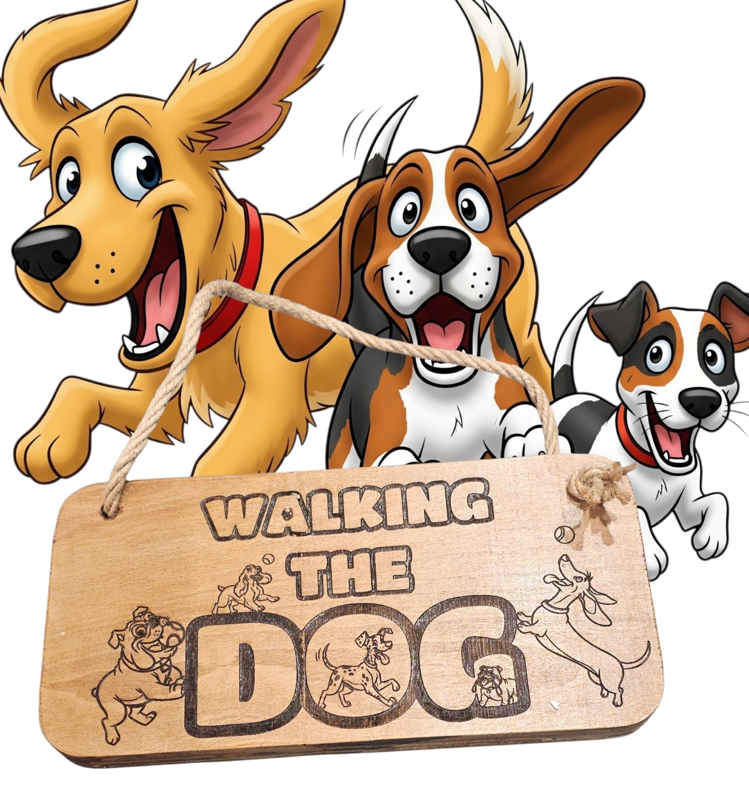 Engraved Double Sided Walking the Dog Rustic Wooden Sign