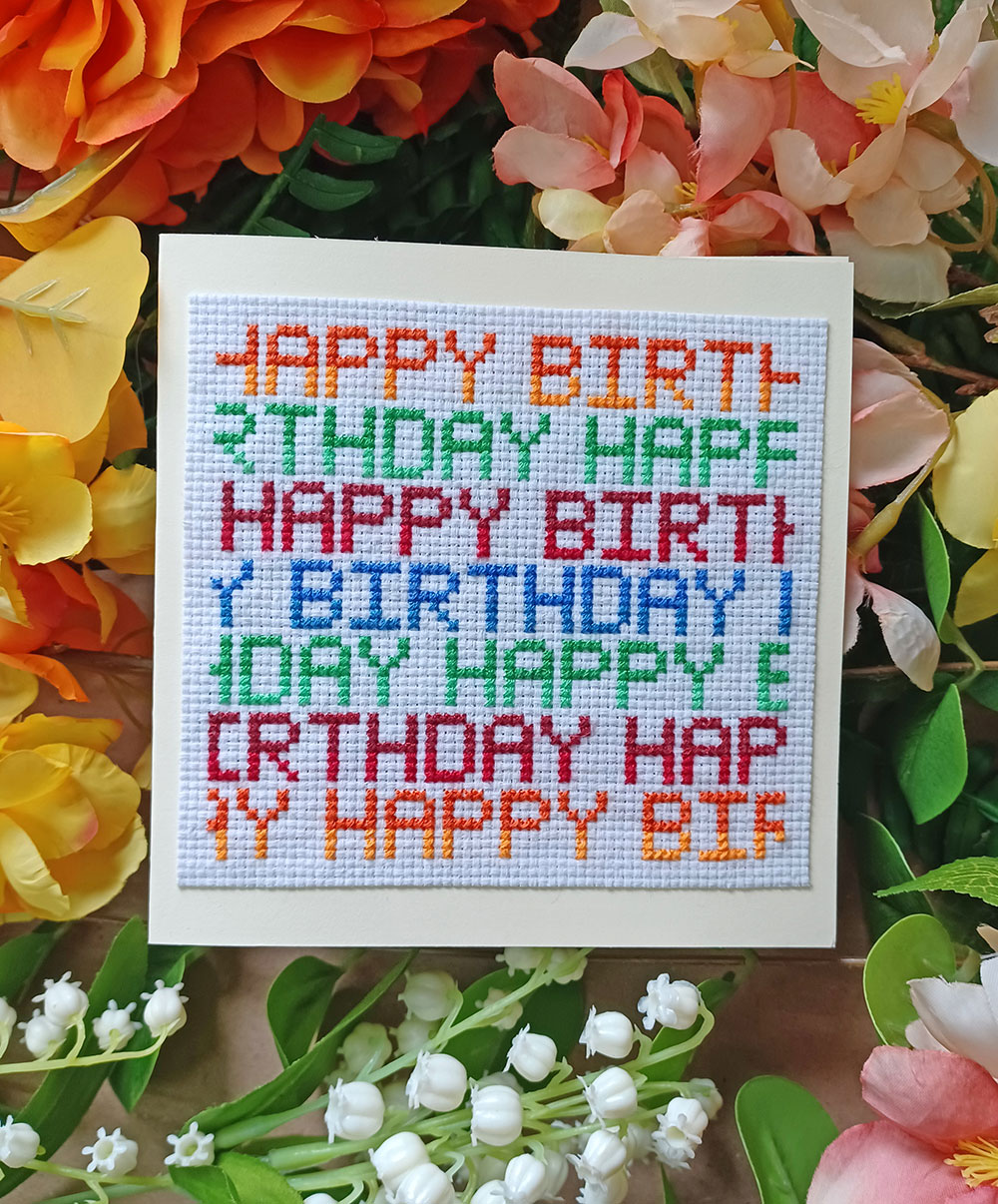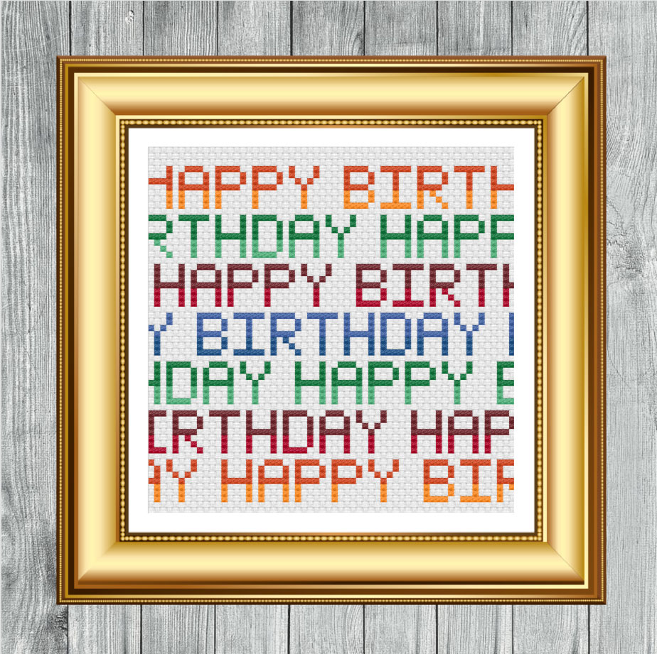 Happy Birthday Text Card Cross Stitch Pattern