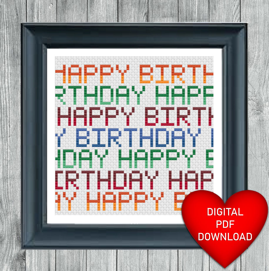Happy Birthday Text Card Cross Stitching Pattern, Instant PDF Download, Card Craft Making