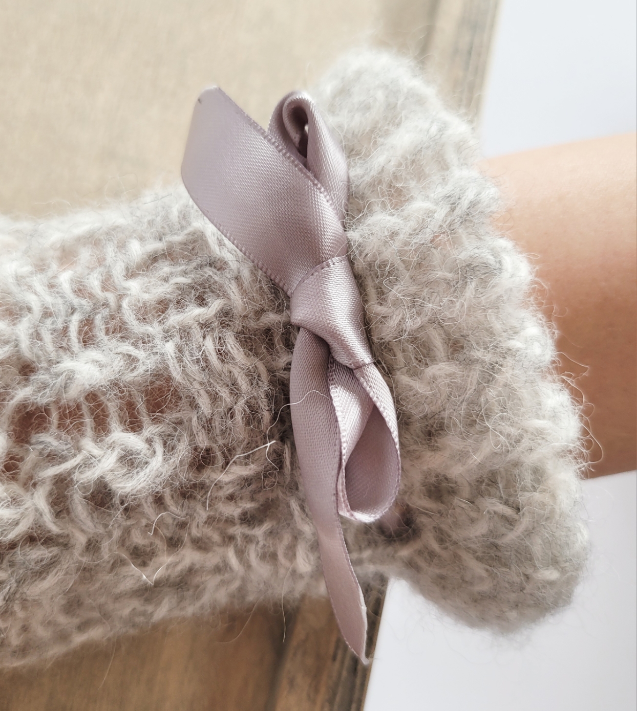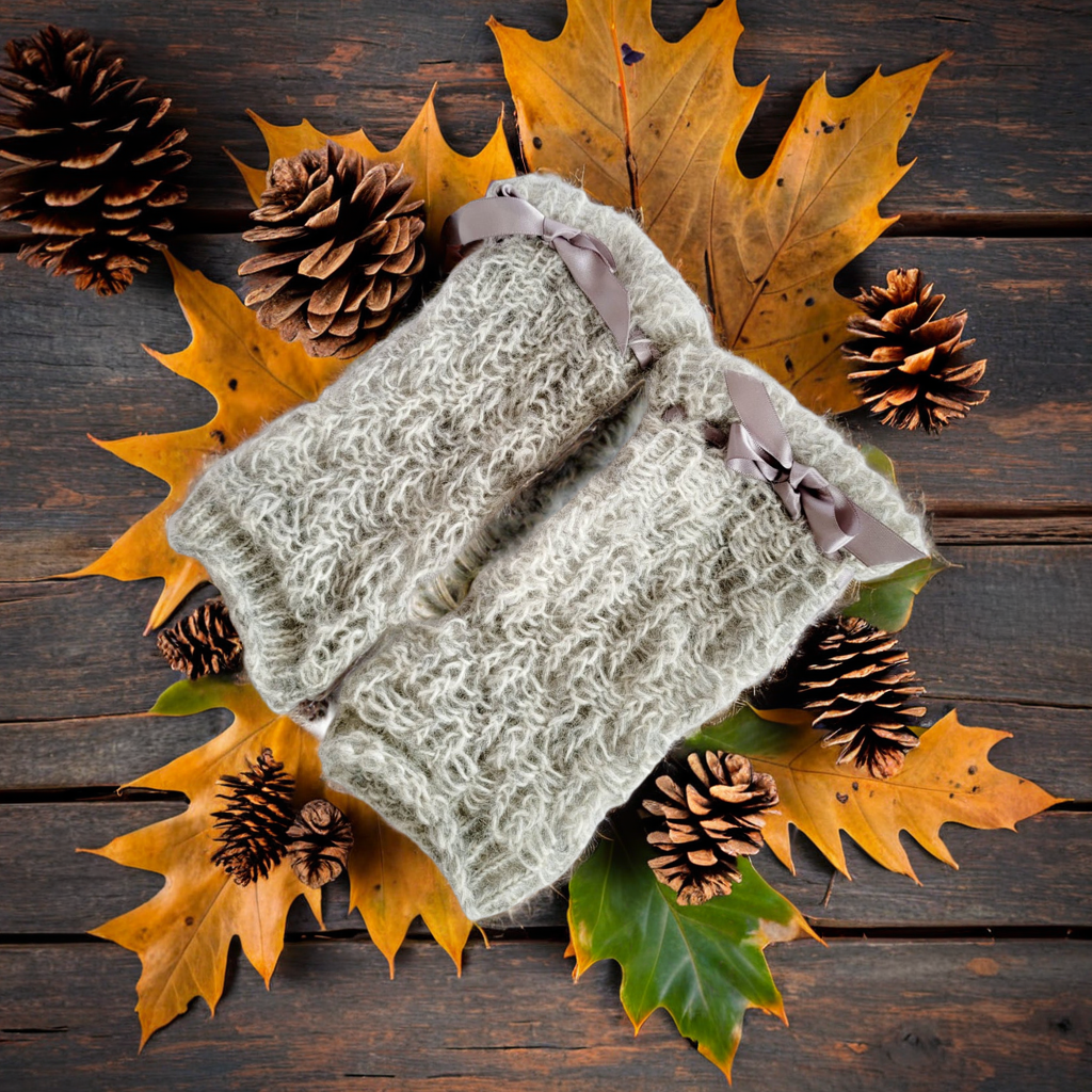 Each pair features a charming grey bow detail that enhances their feminine appeal, making them a delightful accessory for chilly days, despite their delicate look.