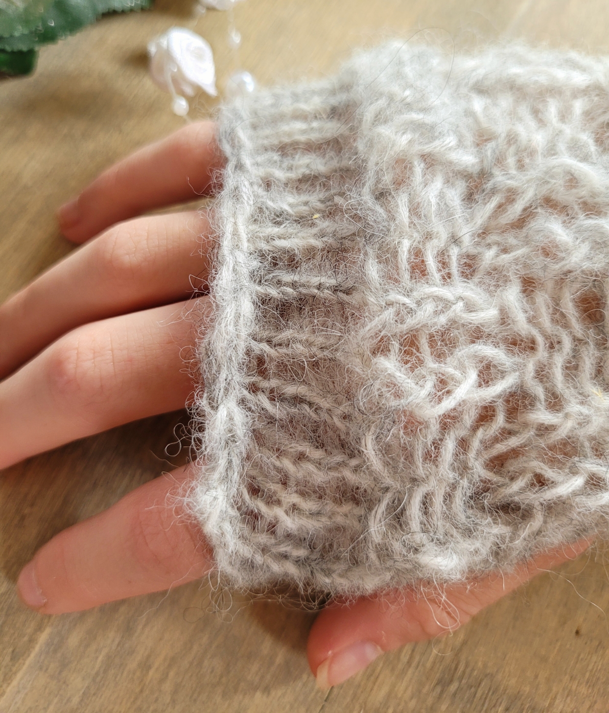 Light Grey Hand Knitted Alpaca Yarn Mittens