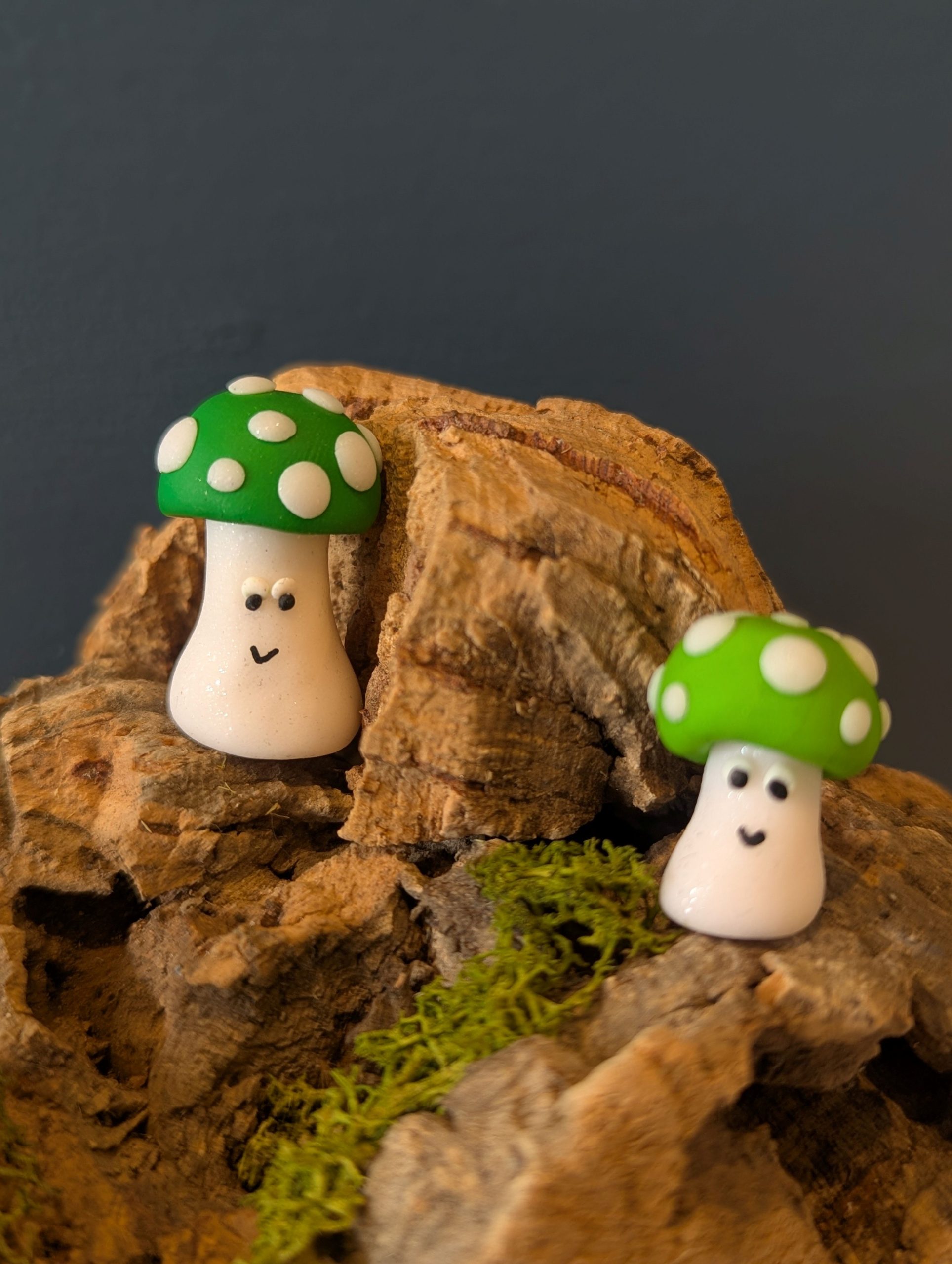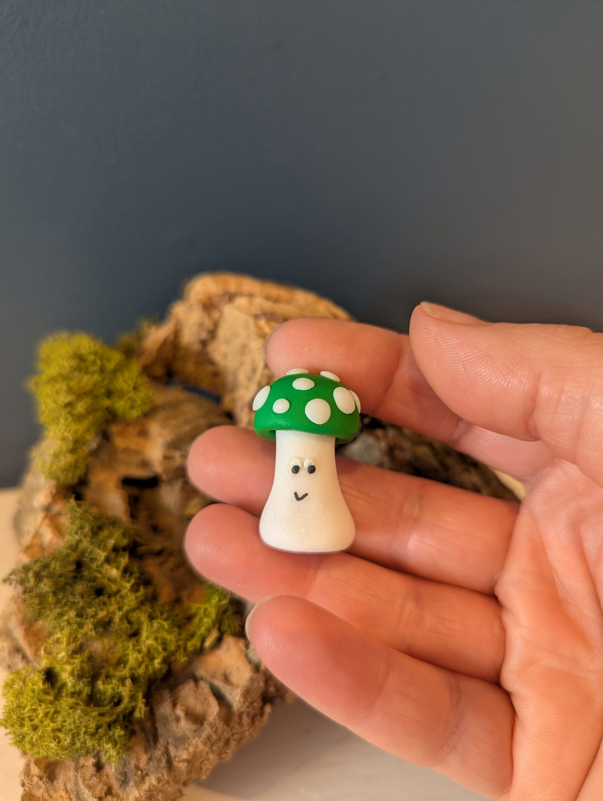 This listing is for one good luck ‘one up’ mushroom or green toadstool, handmade from polymer clay.