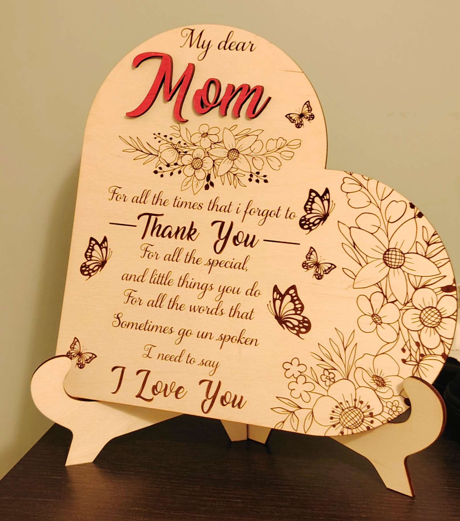 Our personalised laser cut and engraved display heart (approx. 300mm) comes with its own stand and is the perfect keepsake gift she can cherish forever.