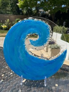 An Ocean Wave sun catcher made with resin and crystals. Comes with adjustable stand