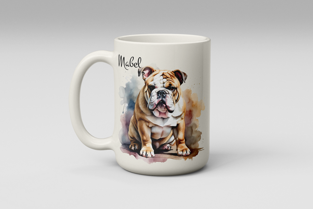 Celebrate your love for bulldogs with our Personalised Bulldog Mug, featuring a charming watercolour-style illustration of an adorable English Bulldog and your pet’s name printed in a stylish font. Whether it’s for your morning coffee or evening tea, this high-quality ceramic mug is perfect for bulldog lovers, pet parents, and dog enthusiasts.