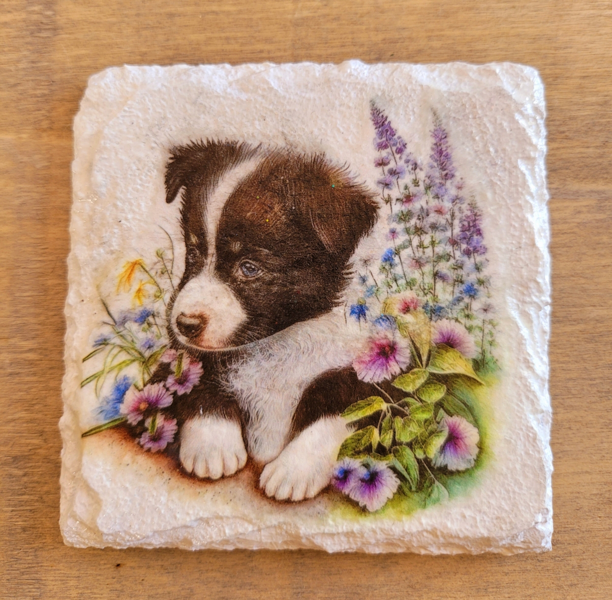 Set of four slate decoupage Border Collie Coasters