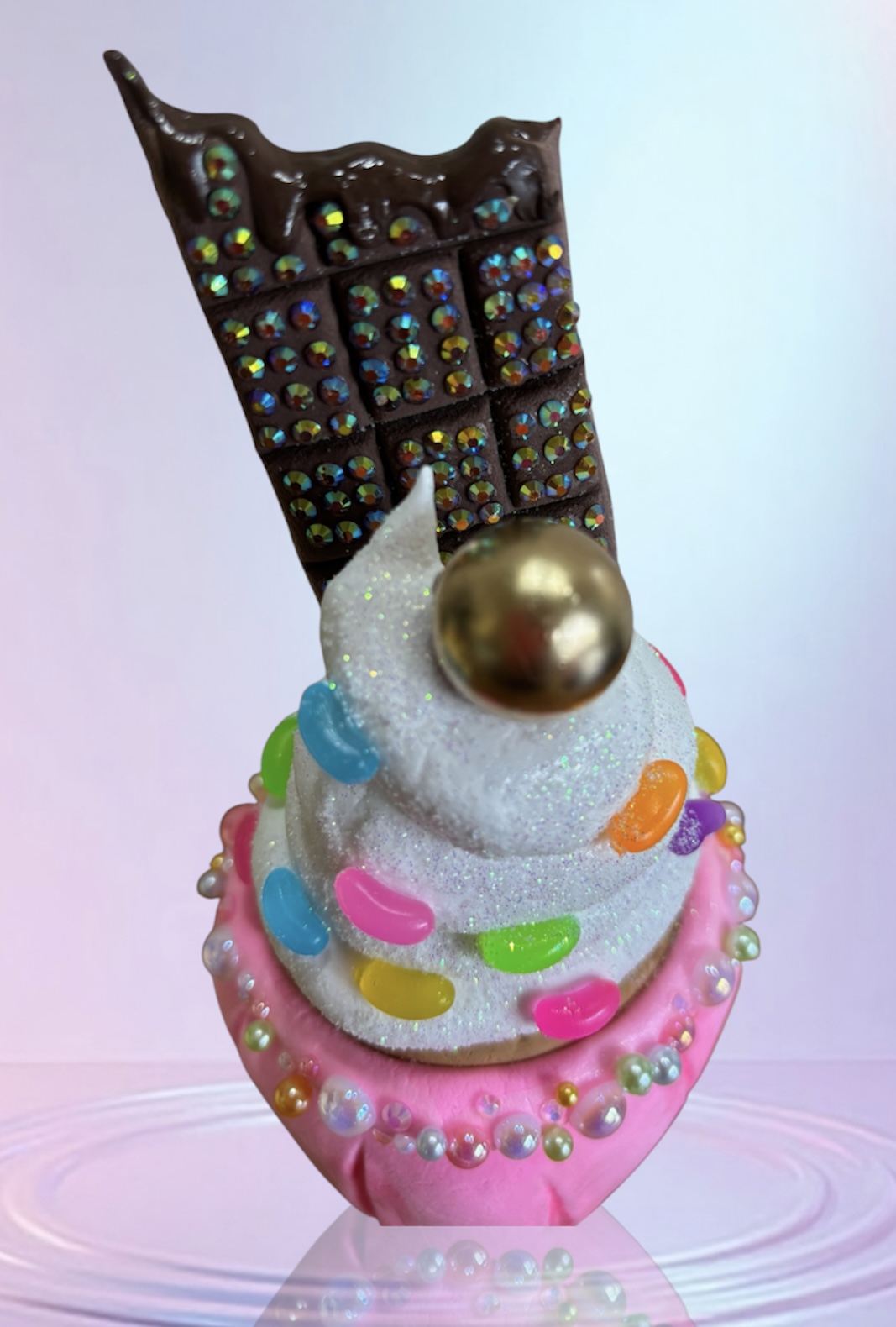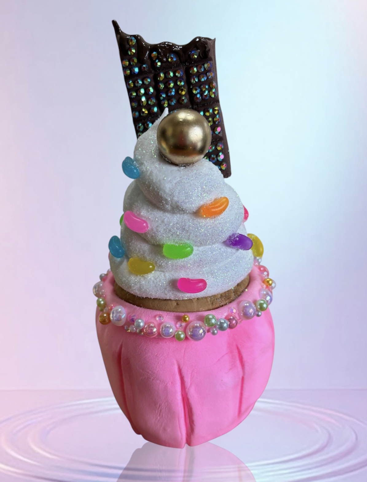 Unique Ice Cream Fairy Cake with Chocolate and Jelly Beans handmade from clay
