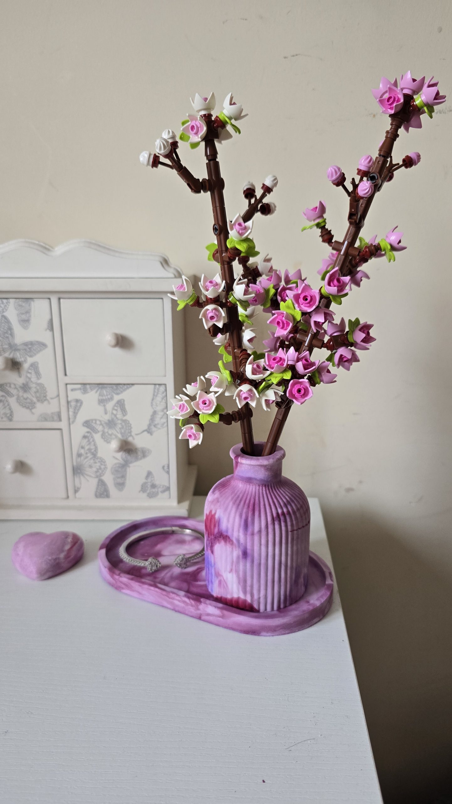 This handmade resin crete tray and pot set features bold pink, berry and soft white marbling inspired by natural stone with a modern twist. The flowing veining moves organically through both pieces, creating a striking yet cohesive set that instantly elevates any space.