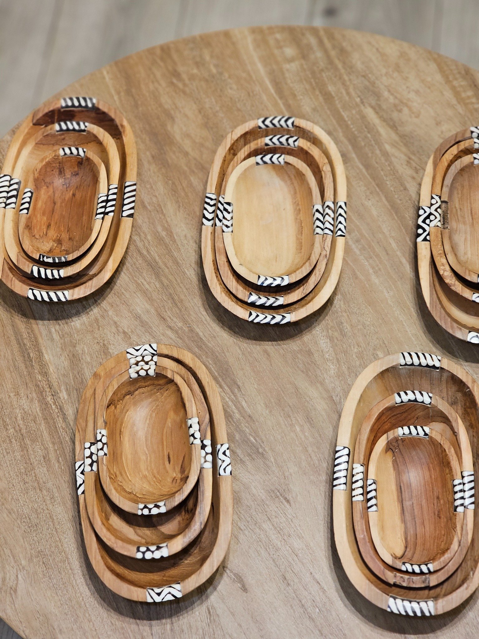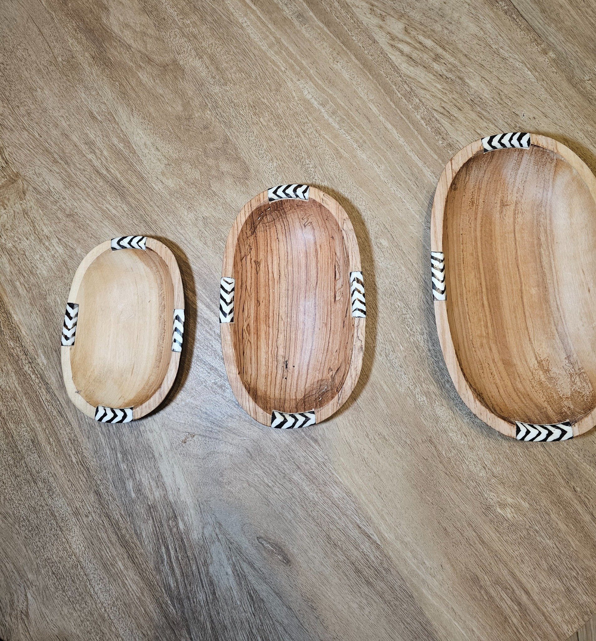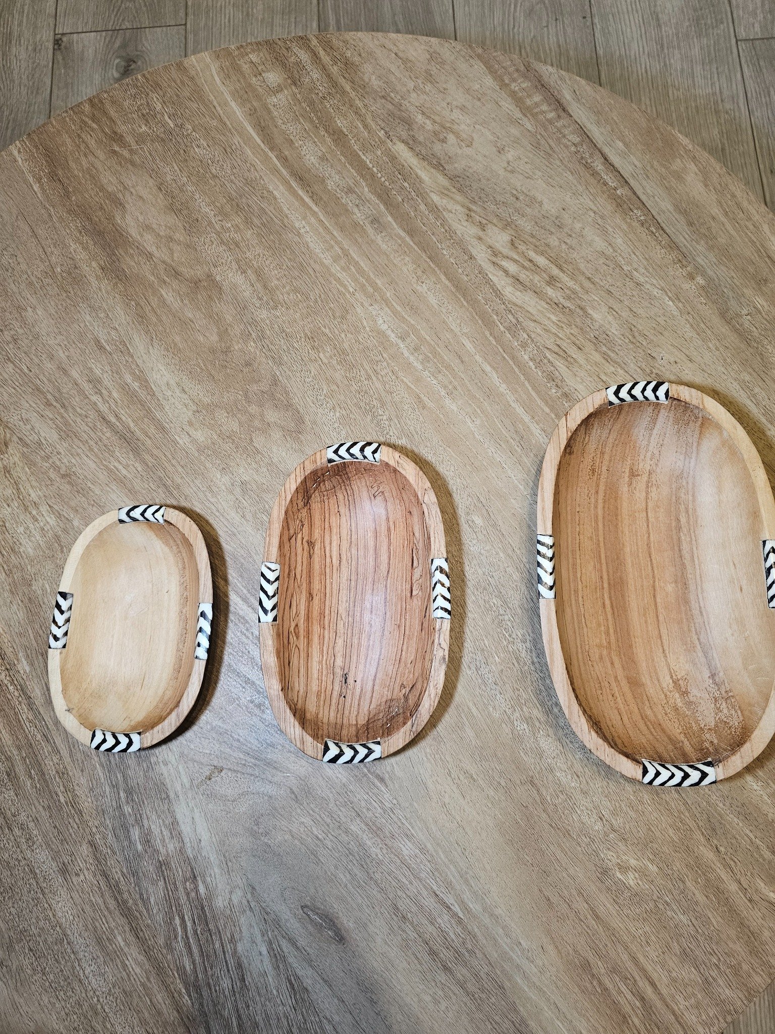 Elevate your home decor with our exquisite Handmade Wooden Oval Trays Set. Crafted from premium, sustainably sourced wood, each tray showcases unique grain patterns, making every piece a one-of-a-kind addition to your space. Perfect for serving snacks, organizing essentials, or as a decorative centerpiece, these versatile trays blend functionality with rustic charm. Their smooth finish and elegant oval shape provide a stylish touch, whether used in the kitchen, dining room, or living area. Ideal for gifting on special occasions or enhancing your own home, this Wooden Oval Trays Set is a must-have for any eco-conscious home. Add warmth and sophistication to your decor while supporting artisanal craftsmanship. Shop now to transform your serving experience!